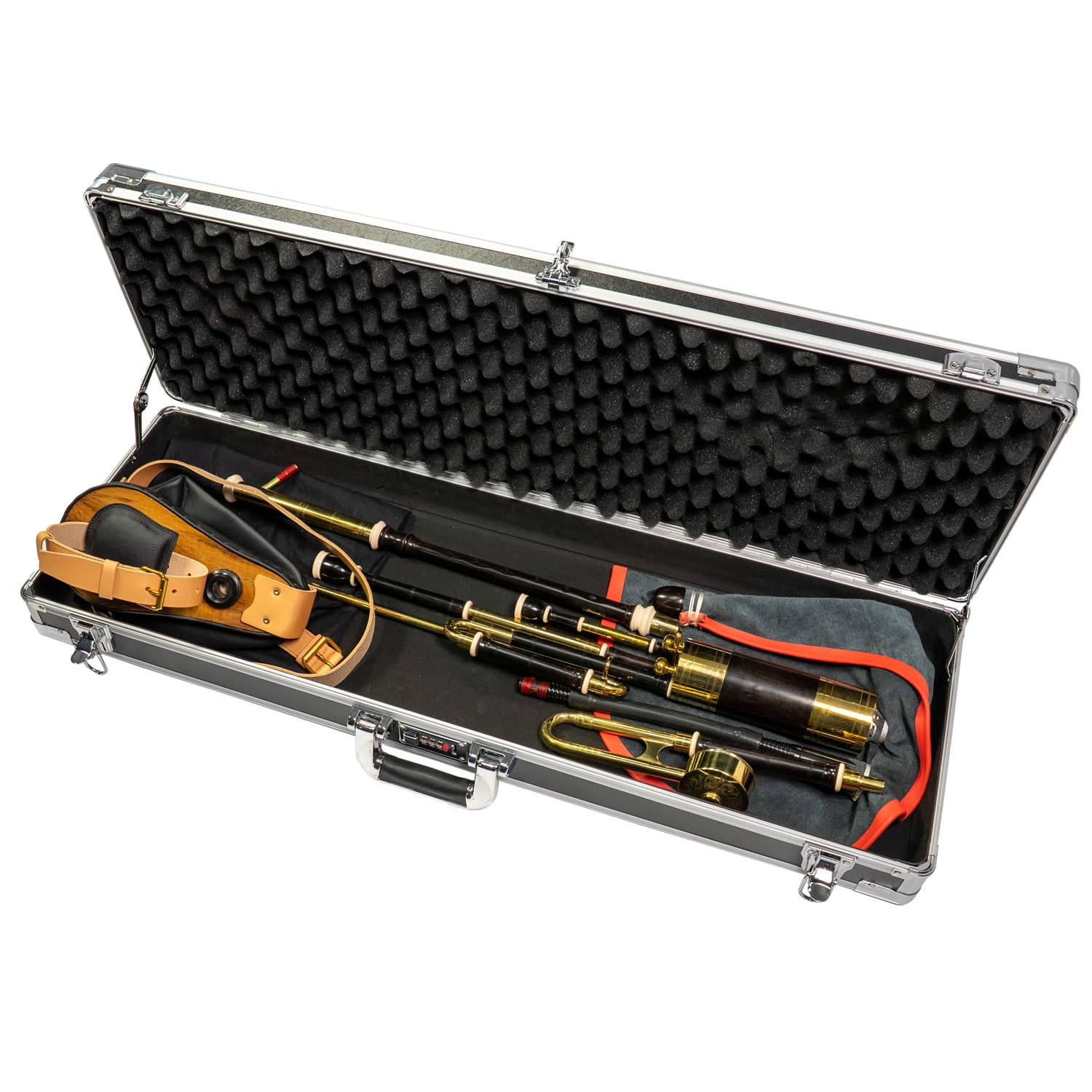 • Brass resonators on tenor and baritone drones add volume and richness