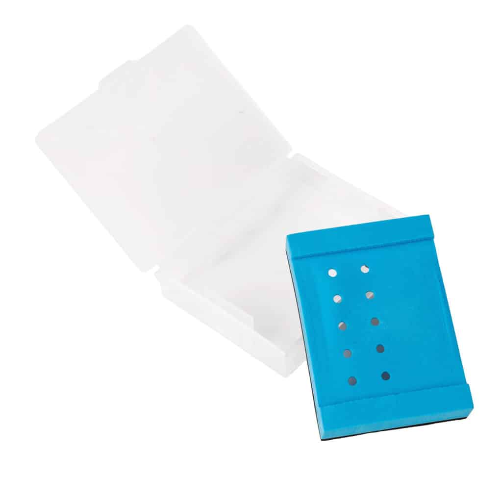 Protect your chanter reeds with the plastic Shepherd Reed Box. Great for Shepherd reeds or any other cane pipe chanter reeds, the slim box stores easily in your pipe case. Inside the container is a molded insert that accommodates 5 reeds. There is also a humidifier disk, which can be moistened and placed under the reed tray to keep reeds from becoming too dry.
