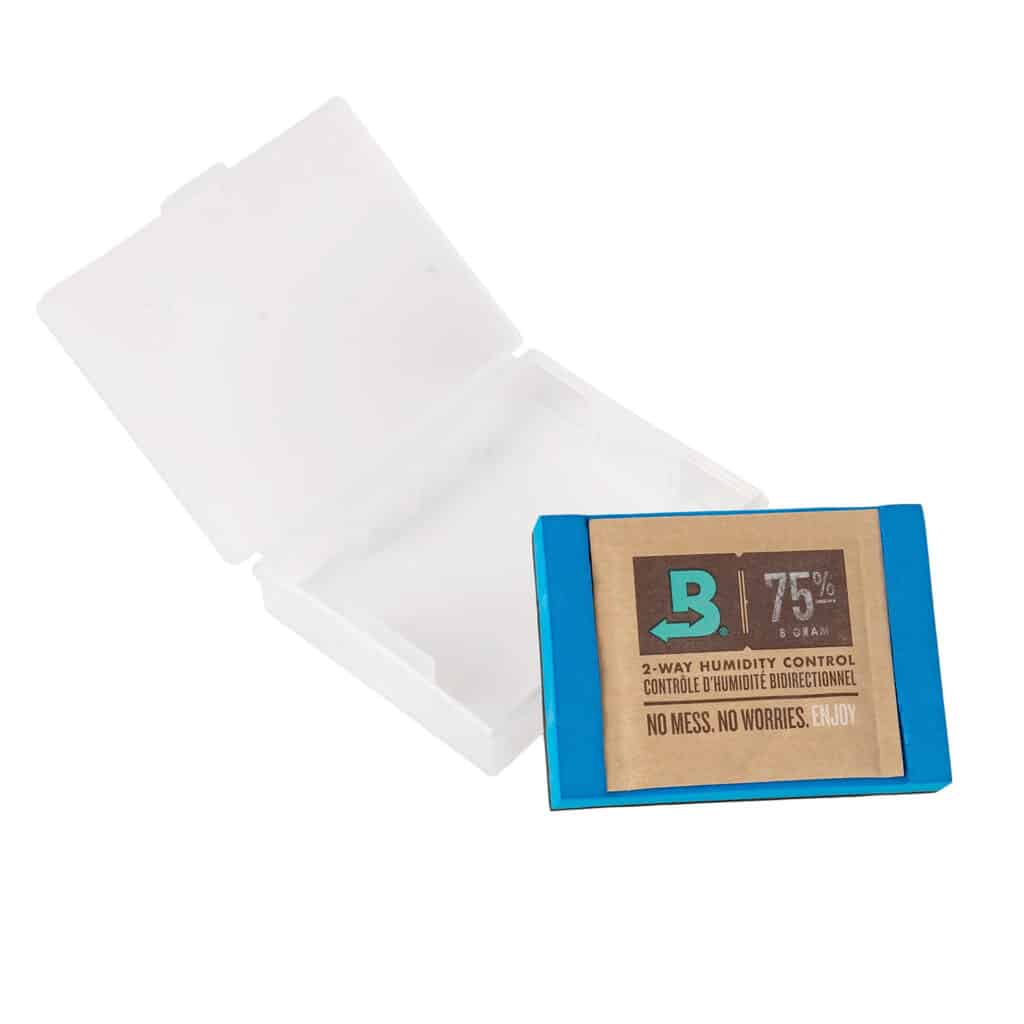 Version II of the BandSpec reed case accommodates a Boveda pack, in addition to providing a safe, secure home for your pipe chanter reeds. When the box is closed, the reeds are surrounded by padding. Each space has just enough room for the reed to be free and to be carefully removed. Reeds don't need to be pressed into place. The case latches well and is sturdy. About the size of a deck of cards. the box is easy to stash in a pipe case. The case does not come with a humidity pack, but fits size 8 Boveda packs.