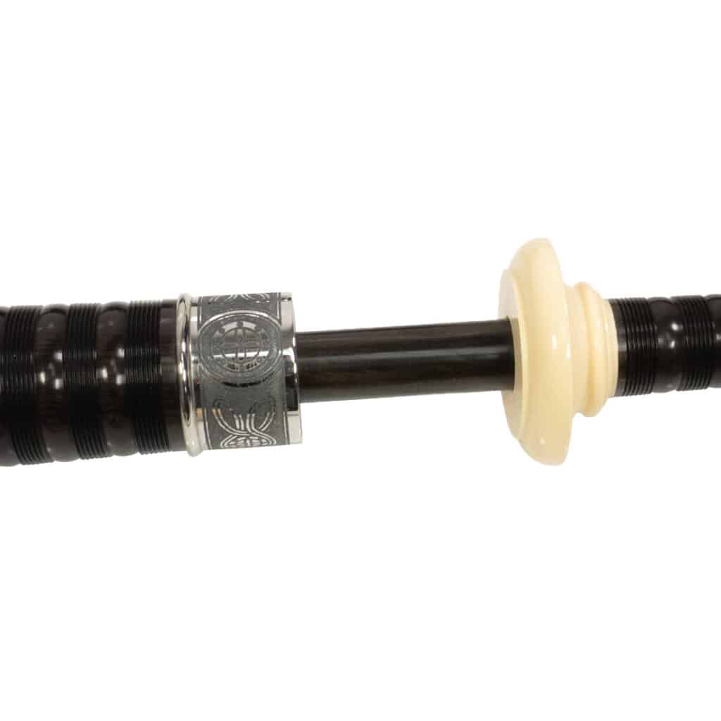Working with RG Hardie, we designed the LE set to deliver style, sound, and maximum value. Engraved nickel ferrules accent imitation ivory projecting mounts and ring caps. The laser-engraved metalwork has an antiqued look. The Blackwood blowpipe and blowpipe stock are lined to prevent moisture damage. Each instrument has a unique serial number on the bass stock. Peter Henderson bagpipes are rooted in tradition that ties back to the original Peter Henderson Ltd, established in the 19th century. They are also played by top soloists and in Field Marshal Montgomery Pipe Band. Made in Scotland.