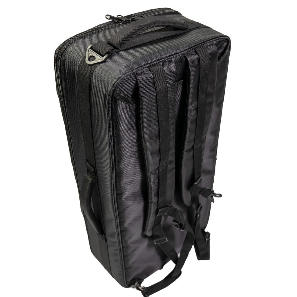 The Bagpiper Explorer combines the best pipe case and modern hiking pack features to create a backpack that's up for any piping adventure. Whether flying, cycling, backpacking, trekking around a festival, or just driving your gear to practice, this case has all you need to stay organized and keep your pipes safe. The pocket and compartments are modern and purposeful, so there's a place for a tablet, a phone, and more. Even with the extra storage, the case is sleek and efficient. Top and side carry handles are tough and cushioned, and the backpack straps can tuck neatly away.